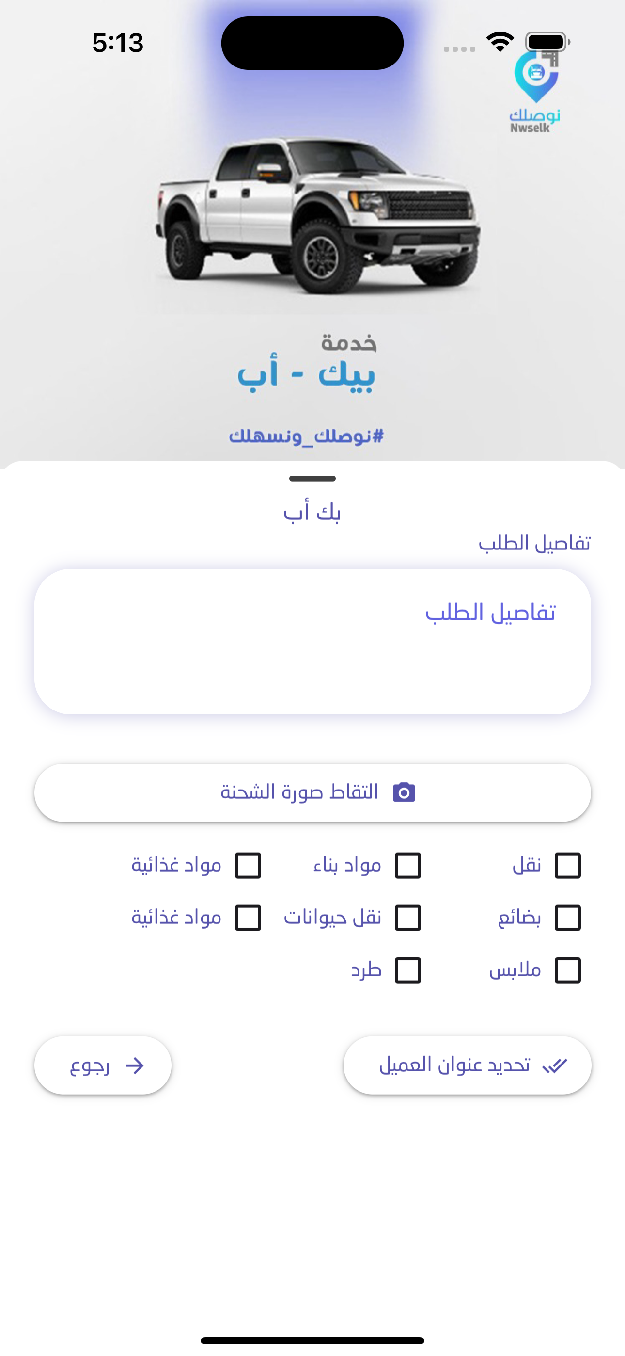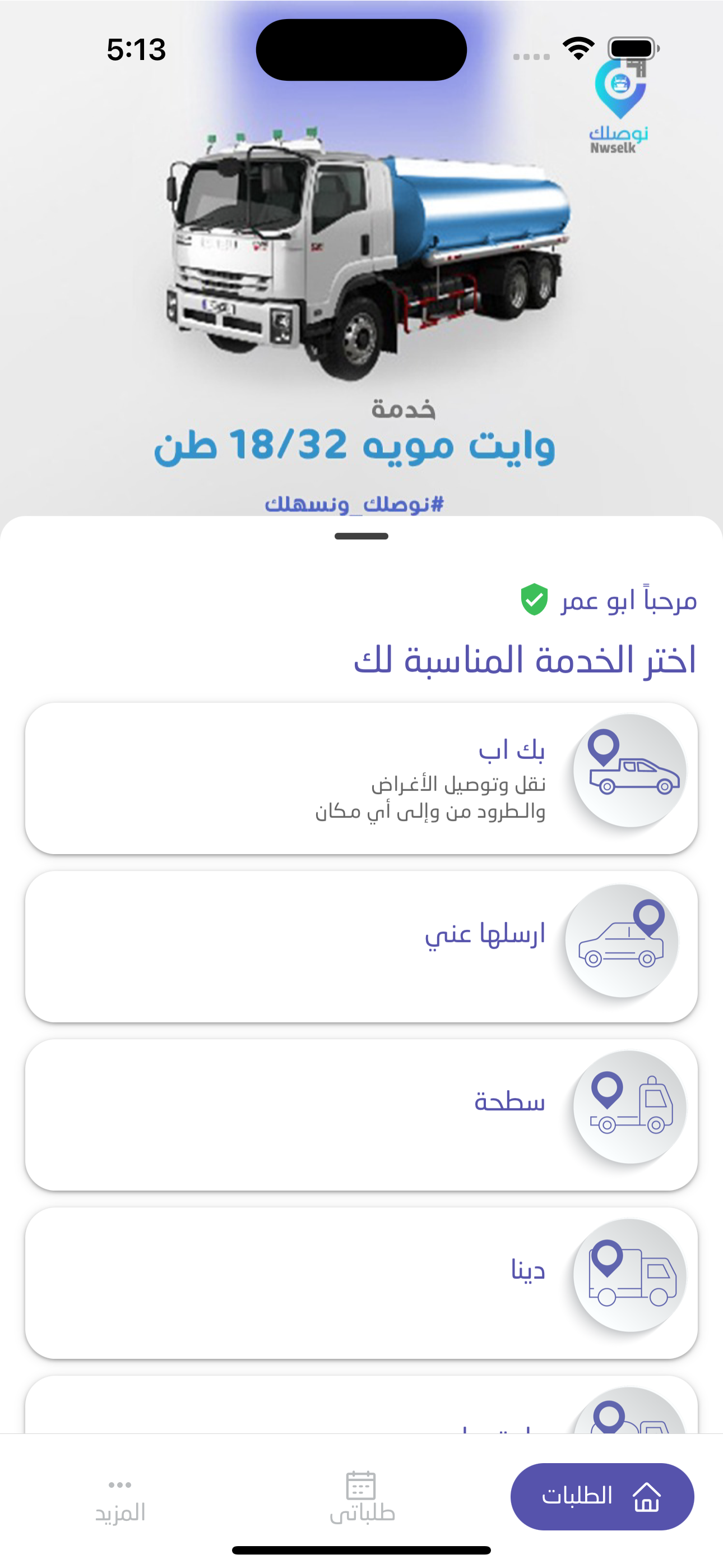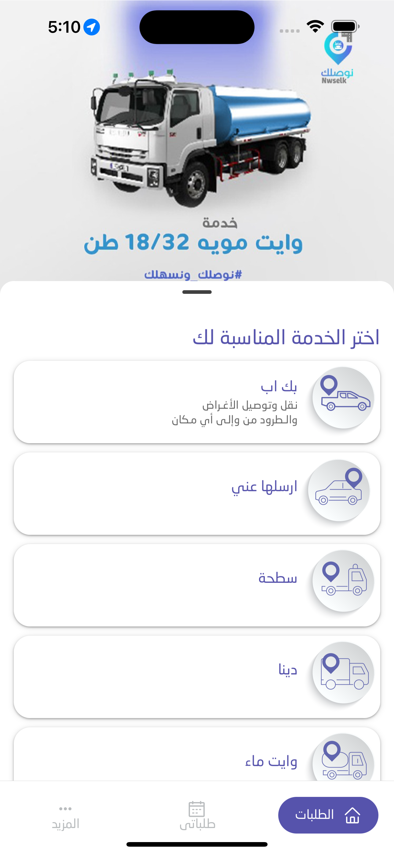 تطبيق نوصلك عنده خدمات كثيره تقدر تستفيد منها وتريحك من المشاوير وتختصر عليك وقت، مثل بك أب، سطحات، دينات، شاحنات وتوصيل بقالات، متاجر، محلات وصيدليات وأشياء كثيرة، بسيطة كل الي عليك تحمل التطبيق